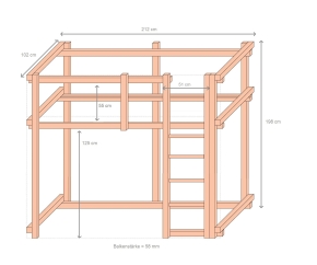 Außenmaße ca. (B x H x T) 212 x 198 x 102 cm Grundmodell ohne Kran und Schaukel 224 x 198 x 102 cm Grundmodell mit einer Sprossenwand 212 x 220-240 x 147 cm Grundmodell mit Schaukel 280 x 226 x 102 cm Grundmodell mit Kran ( ausgefahren)