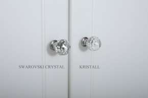 Außergewöhnliche Kommode von Oli&Niki in weiß aus der Kristallserie 1 in einem eleganten Design, die durch ihren originellen Aufsatz und dekorative Fräsungen besticht. In der ovalen Aussparung des Aufsatzes befindet sich eine 3 cm große Kristallkugel, die bei Sonnenlicht wunderschöne Leuchteffekte in allen Regenbogenfarben spendet. Die Kinderkommode verfügt über drei durchgehende und große Schubladen, die viel Stauraum für Kleidung und Spielsachen bieten. Die Schubladen sind mit transparenten, in Facetten geschliffenen Griffen ausgestattet. Zur Auswahl stehen Ihnen Möbelgriffe aus Acrylglas oder Griffe mit echten Swarovski-Kristallen. Die Kommode wird aus hochwertigem Mdf-Material handgefertigt und deckend lackiert. Das Material ist form- und farbbeständig.
