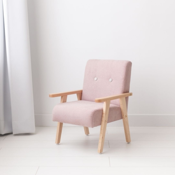 Klassischer und charmanter Samt Kindersessel mit Armlehne aus Holz in zartem, rosa Farbton mit weicher Polsterung und stabilem Kern, der eine bequeme Rückzugsmöglichkeit zum Buch Lesen oder Entspannen bietet. Stilvolle Form, attraktive Struktur des Velours und verspielte Details wie Zierknöpfe an der Rückenlehne verleihen dem Kindersessel ein zeitloses Design, das zu jedem Einrichtungsstil passt. Der Kindersessel lässt sich hervorragend mit anderen Kleinmöbeln und Deko-Artikeln kombinieren und ergänzen.