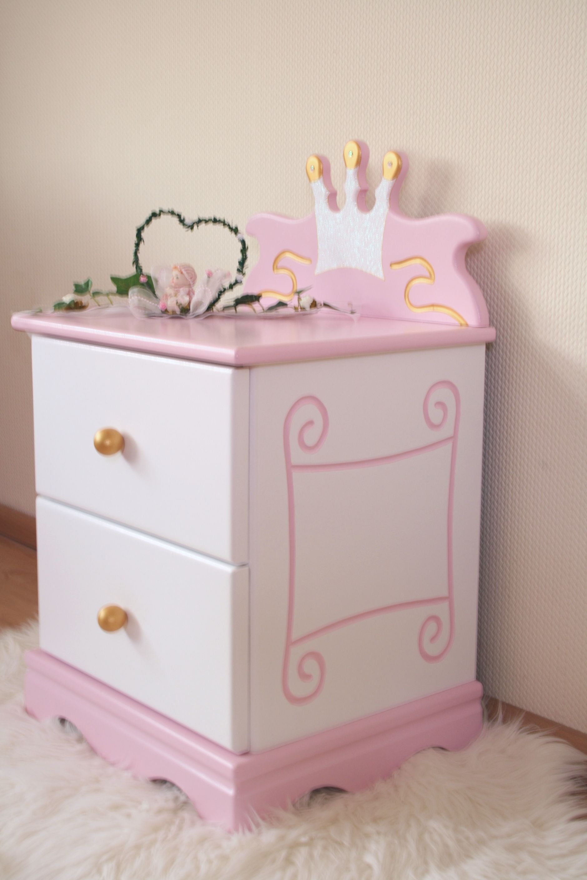 Charmanter und stabiler Nachttisch von Oli&Niki aus der Möbelserie Kutsche in rosa-weiß mit einer mit Pailletten geschmückten Krone und wunderschönen Girlanden und Ornamenten, die zum Hingucker in jedem Mädchenzimmer wird. Der Nachttisch verfügt über zwei praktische Schubladen, in den sich Bücher und andere kleine Utensilien schnell verstauen lassen. An den Schubladen glänzen dekorative, goldene Kugeln. Das tolle Nachtschränkchen bietet außerdem praktische Abstellfläche für Wecker und Getränke. Der Nachttisch wird aus hochwertigem Mdf-Material handgefertigt und deckend lackiert. Das Material ist form- und farbbeständig.