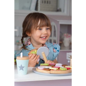 Natürliches und schadstofffreies Holzspielzeug als Pizza aus Holz, das aus vielen wunderschönen Teilen besteht. Das Set beinhaltet: einen Holzteller mit Pizzaschneider und Pizza mit buntem Belag wie Pilze, Salamischeiben, Salat, Zwiebelringe und Ananasstückchen. Mmmh lecker! Alle Teile sind toll aufeinander abgestimmt und garantieren viele Stunden voller Spaß. Die Pizza wird sogar in einer echten Pizzabox geliefert. Alle 6 Pizzastücke werden mit Hilfe von Klettverschluss fixiert. Das tolle und hochwertige Holzspielzeug fördert die motorische Entwicklung, gedankliche Fähigkeiten und regt die kindliche Fantasie.